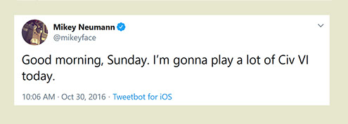 Follow @SidMeiersMemoir on Twitter and Instagram. To learn more about Sid's upcoming projects, visit www.firaxis.com.